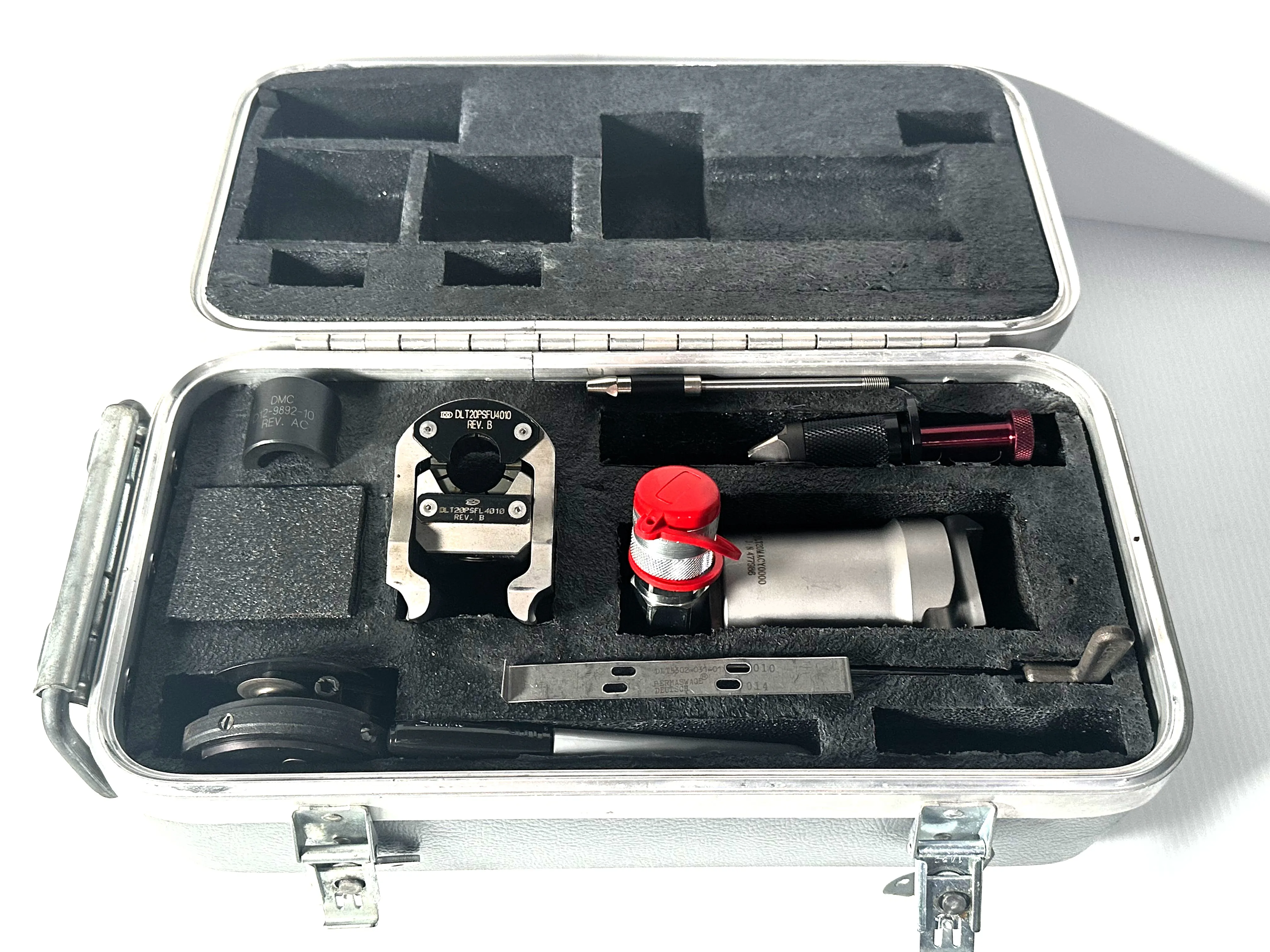 The Permaswage® DLTPSKT3004 Tool Kit is designed for tubing size 5/8" (size -10). The tools in this kit operate at up to 10,000 psi and are suitable for hydraulic lines with operating pressures of up to 3,000 psi, ensuring secure and reliable Permaswage connections. This kit includes all the tools and accessories to perform swaging operations for the listed size, including power units, swage heads, deburring tools and stems, inspection gauges, tube cutters, and marking tools. Please note, the kit does not include a pump. Compact and efficient, it is ideal for ensuring durable tube connections in demanding repair settings.